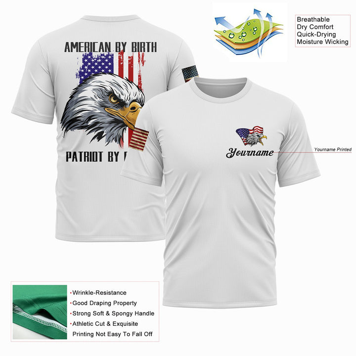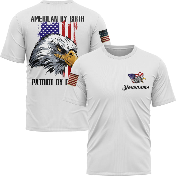 American By Birth Patriot By Choice Custom White American Patriot Name T-Shirt