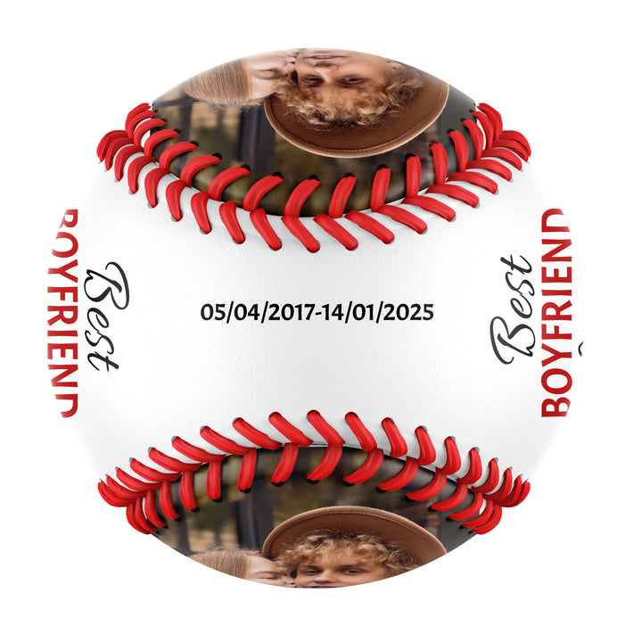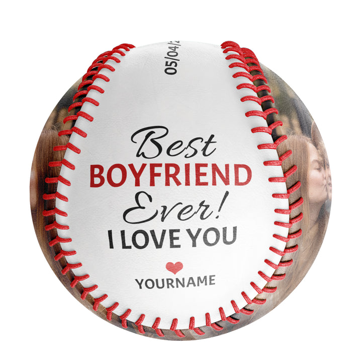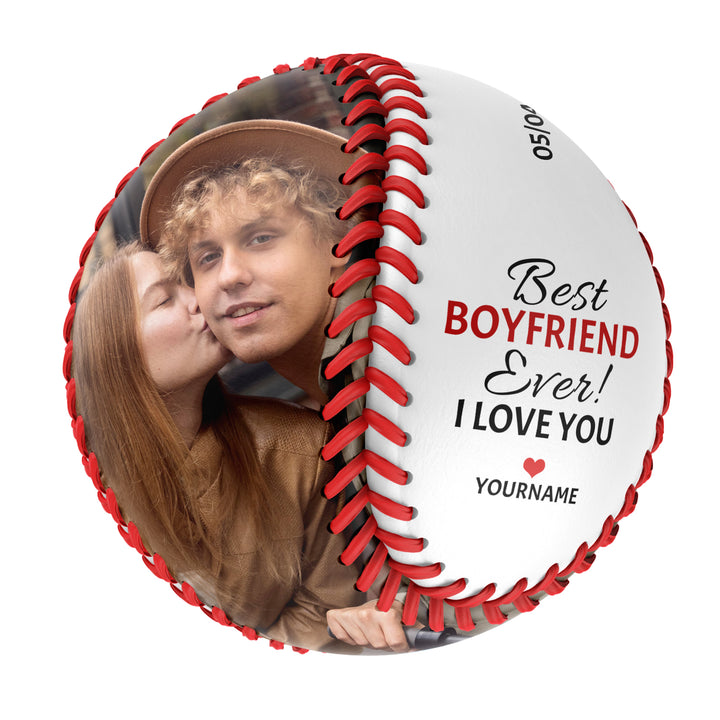Best Boyfriend Ever Personalized Anniversary Name Date Photo White Baseballs