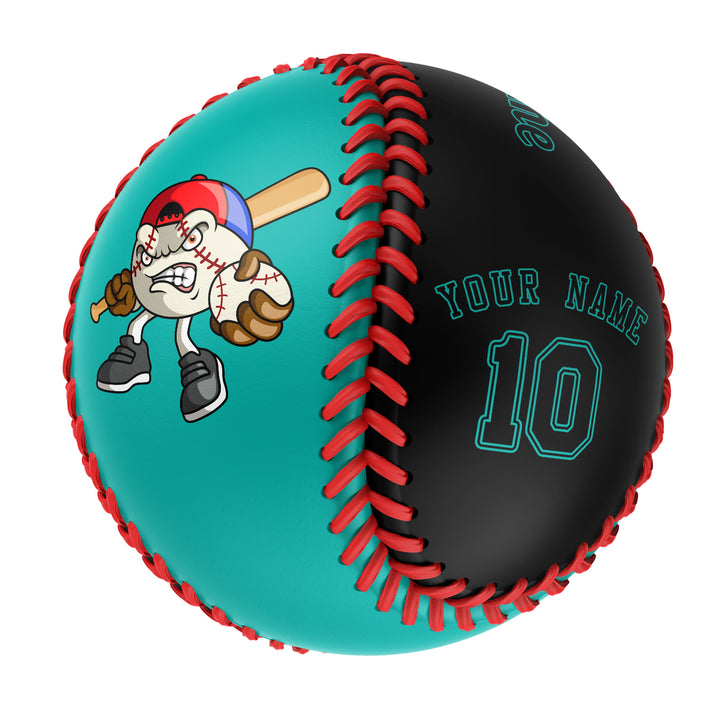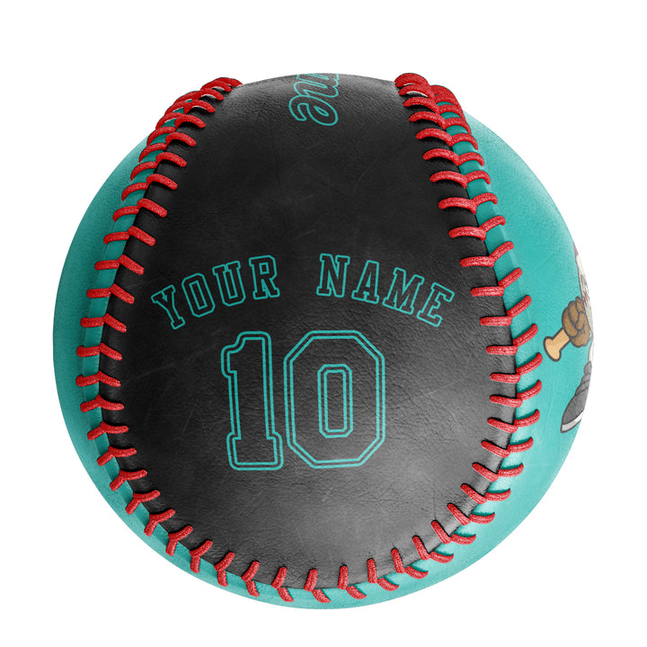 Custom Aqua Black Green Half Leather Black Authentic Baseballs