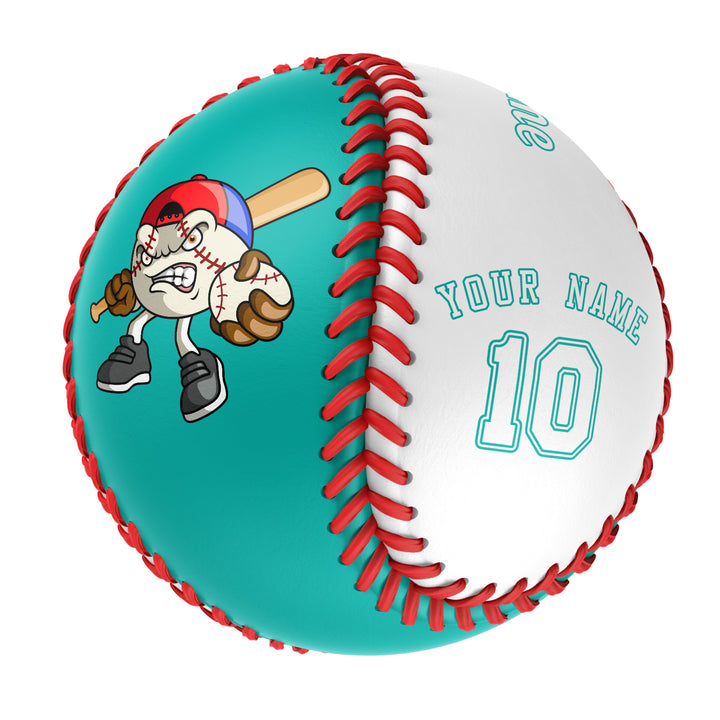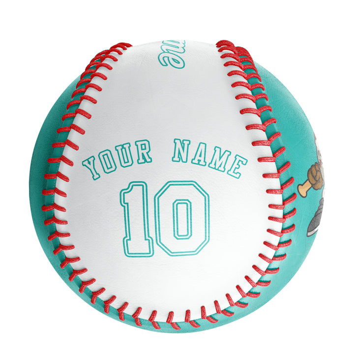 Custom Aqua White Green Half Leather White Authentic Baseballs