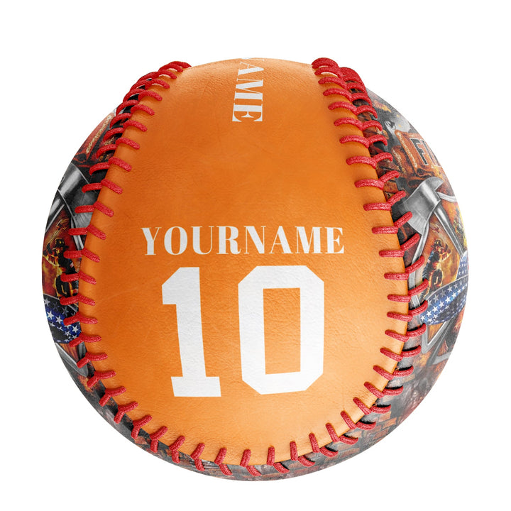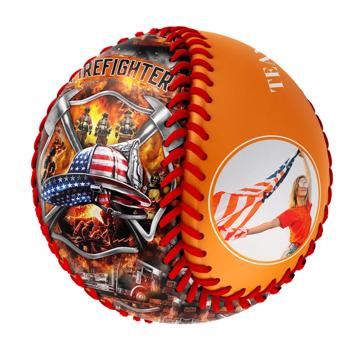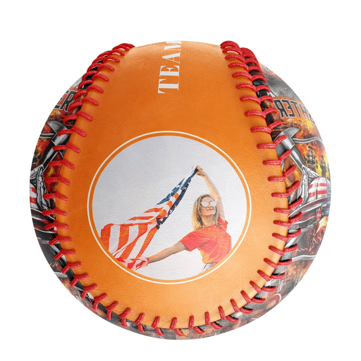Custom Bay Orange American Flag Firefighter Photo Baseballs