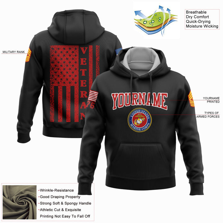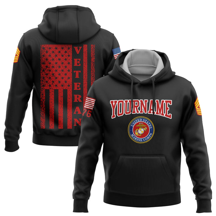 Custom Black 1776 American Flag Marine Corps Military Rank Name Veterans Day Hoodie | Father's Day Gifts