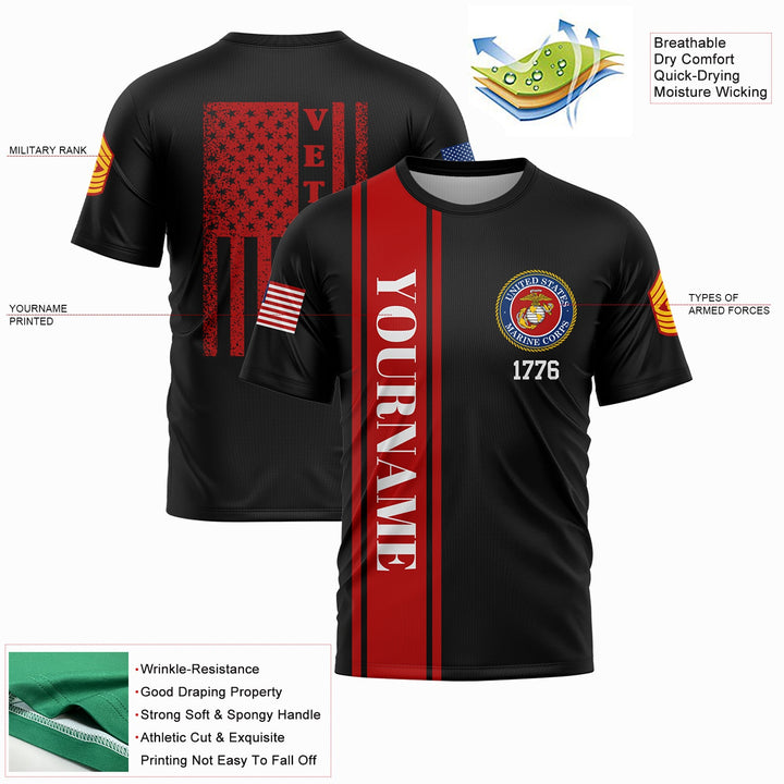 Custom Black 1776 American Flag Military Rank Name Veterans Day T-Shirt