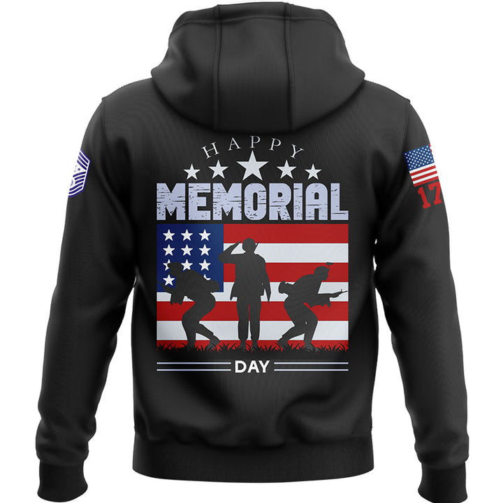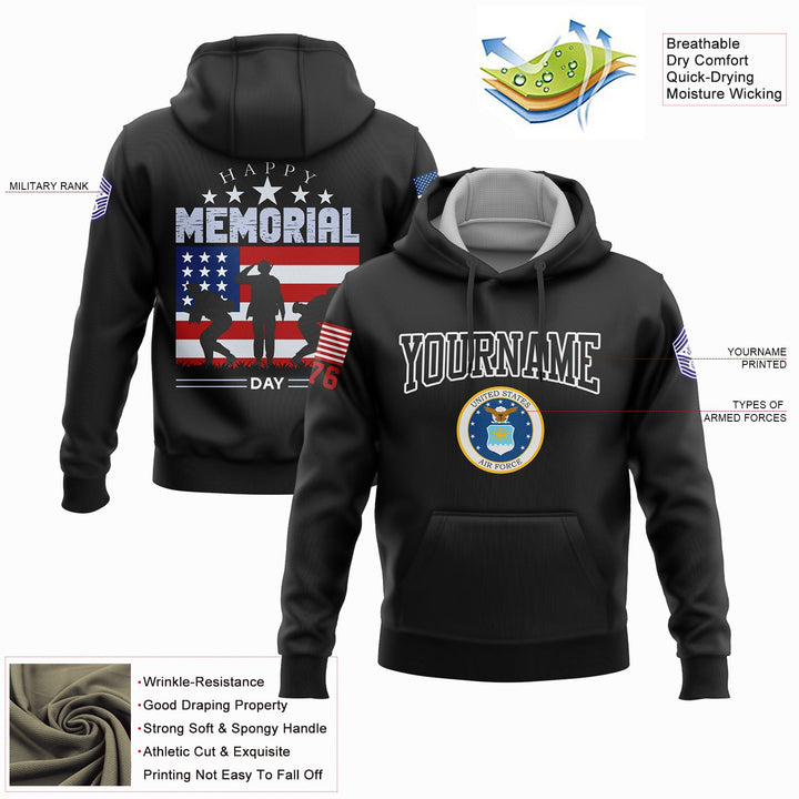 Custom Black 1776 American Flag U.S Air Force Military Rank Name Memorial Day Hoodie