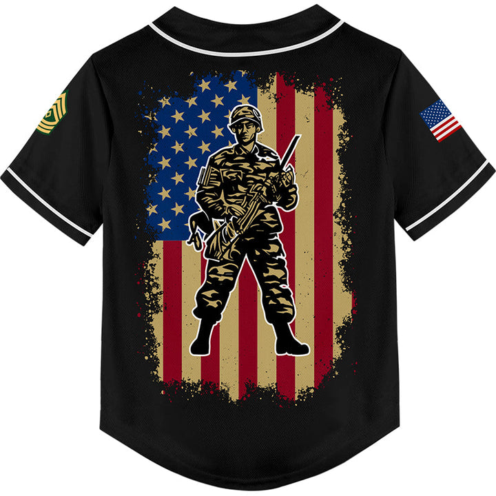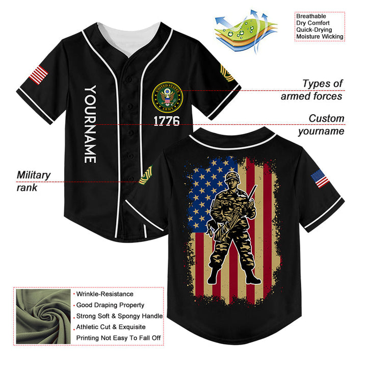 Custom Black 1776 American Flag U.S Army Military Rank Name Baseball Jersey