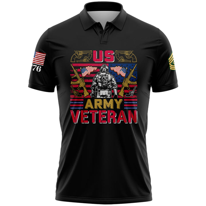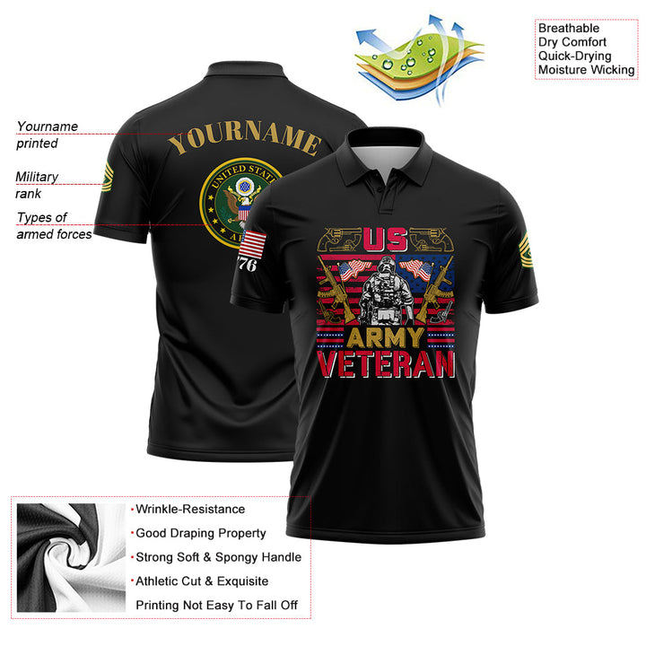 Custom Black 1776 American Flag U.S Army Military Rank Name Golf Polo Shirt