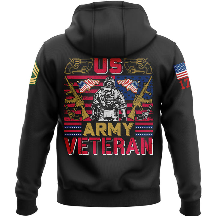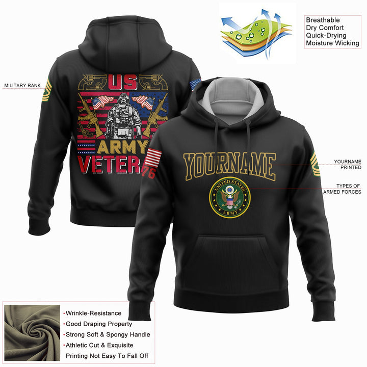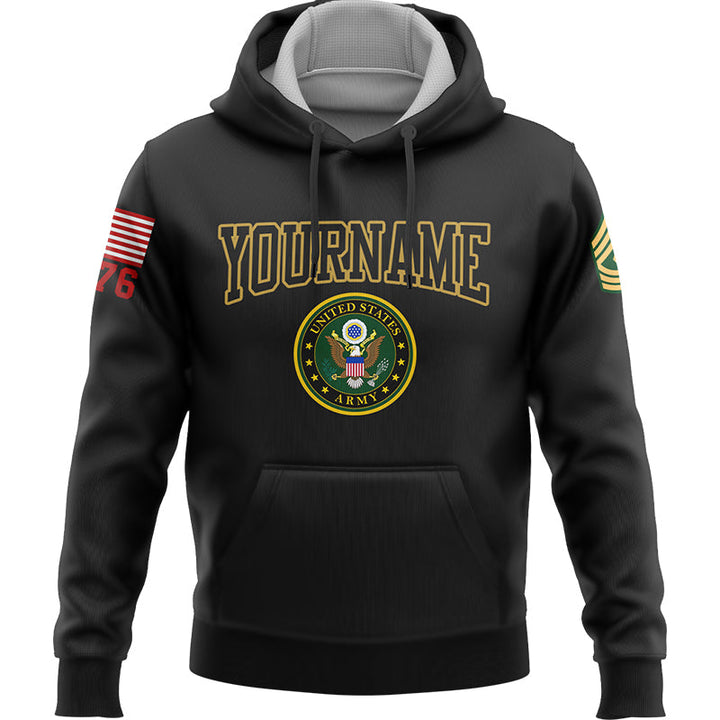 Custom Black 1776 American Flag U.S Army Military Rank Name Hoodie