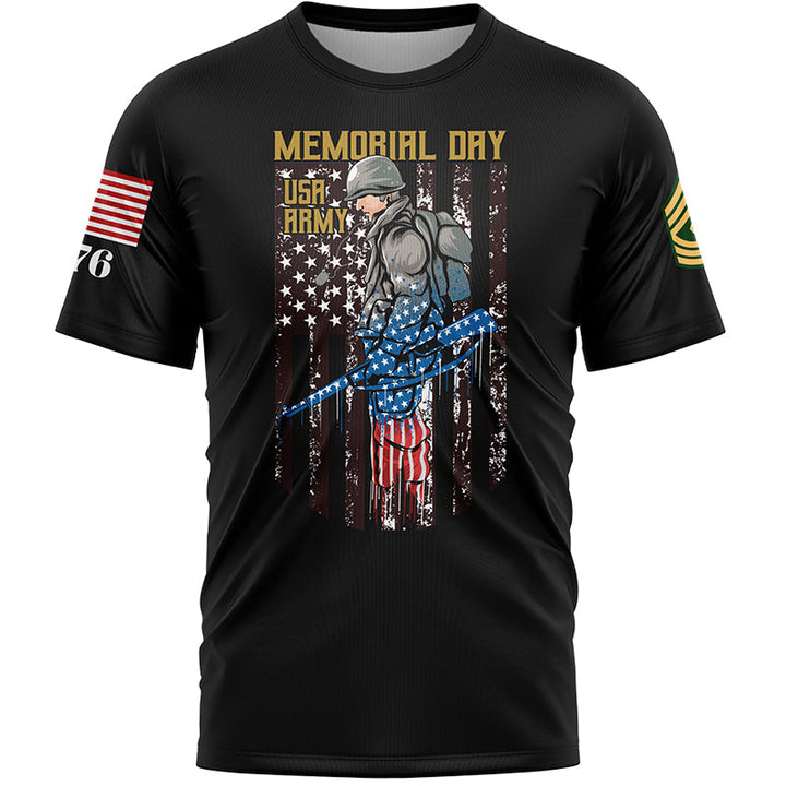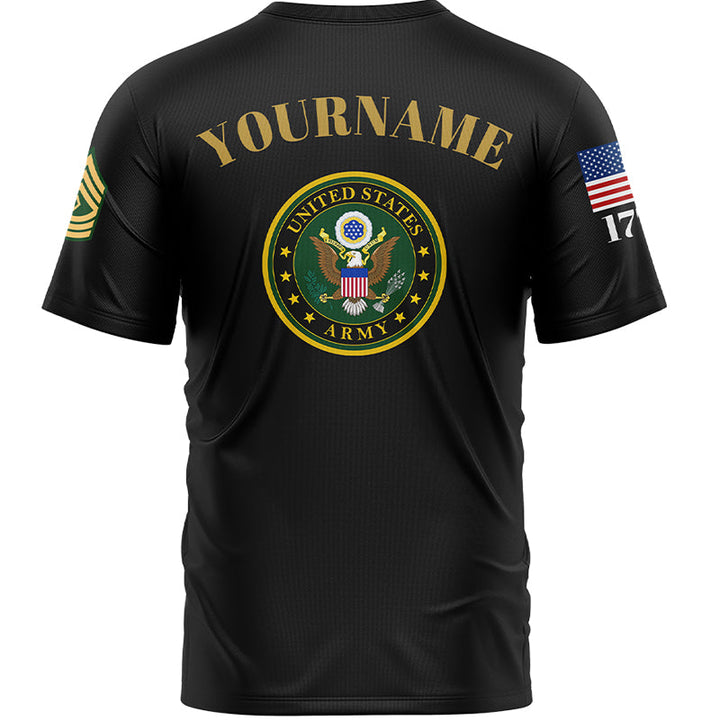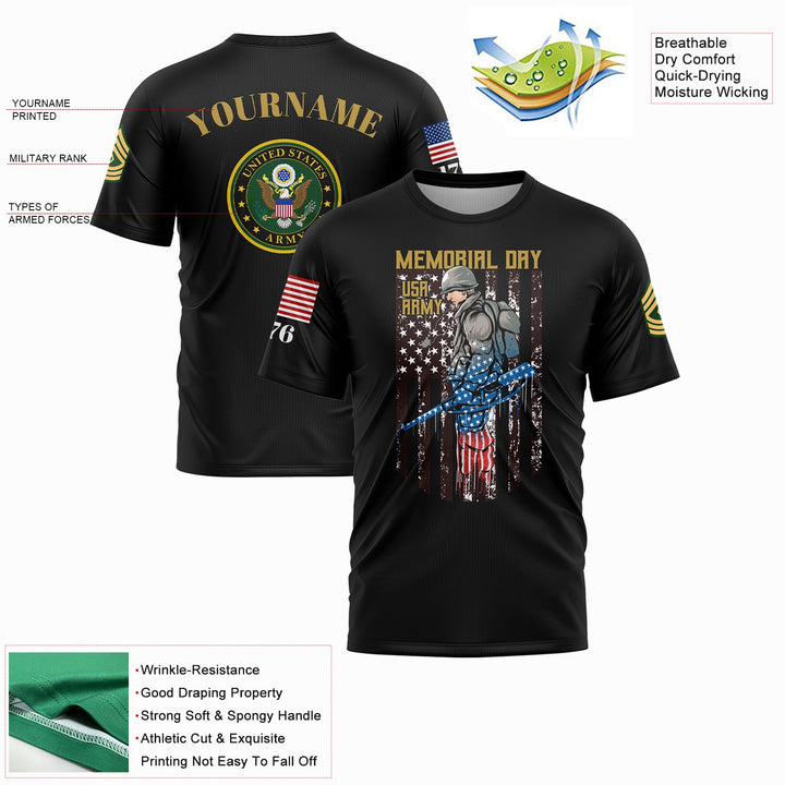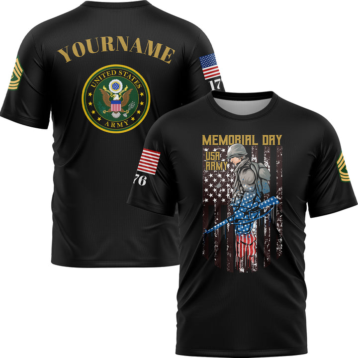 Custom Black 1776 American Flag U.S Army Military Rank Name Memorial Day T-Shirt