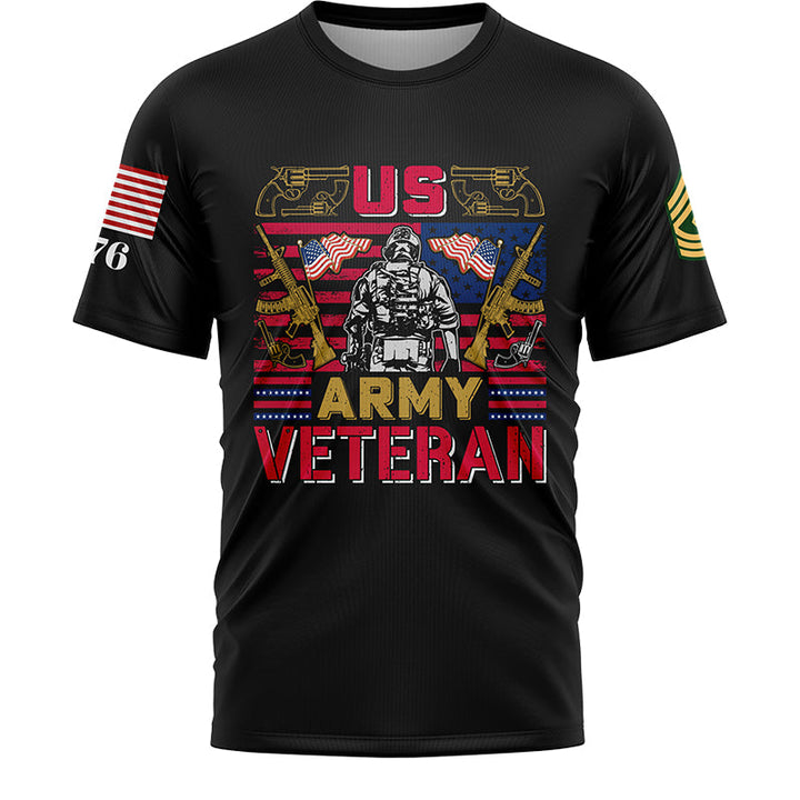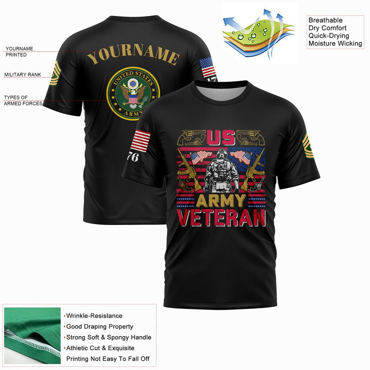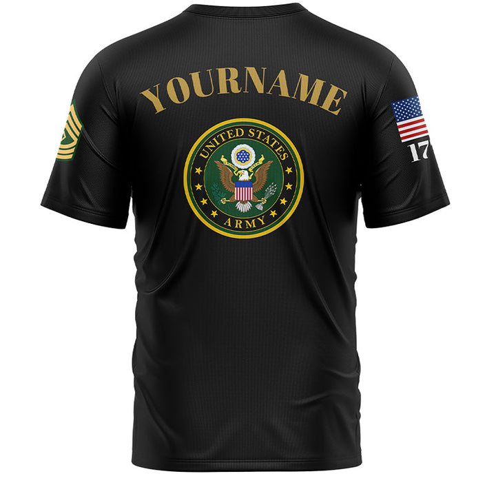 Custom Black 1776 American Flag U.S Army Military Rank Name T-Shirt