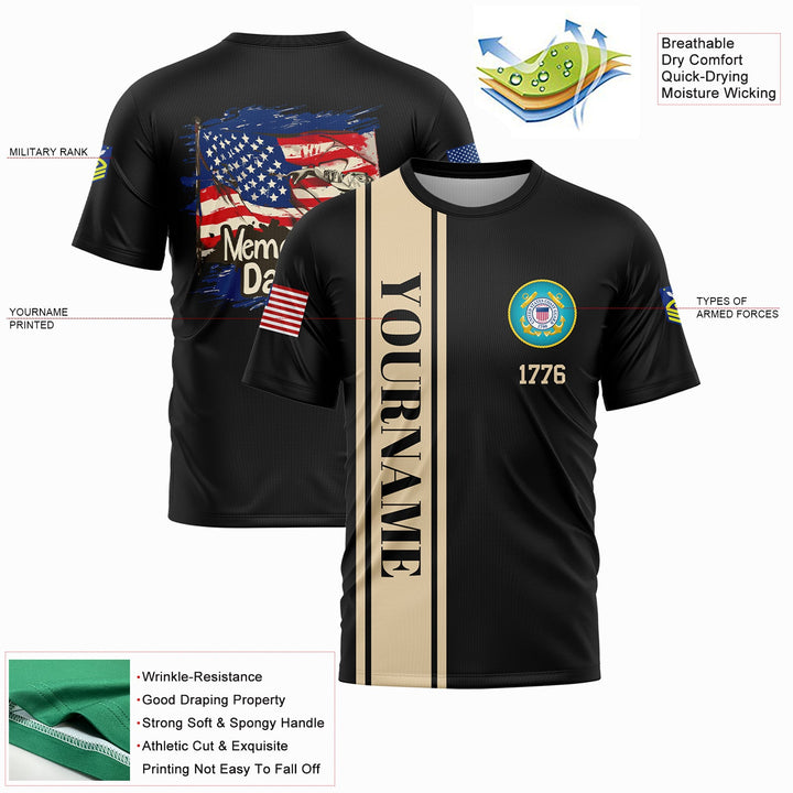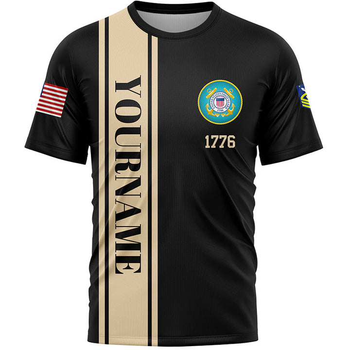 Custom Black 1776 American Flag U.S Coast Guard Military Rank Name Memorial Day T-Shirt