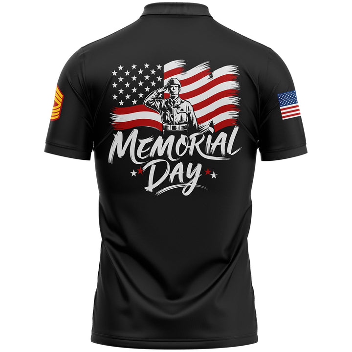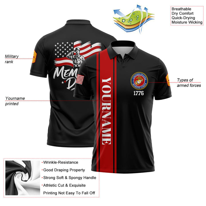 Custom Black 1776 American Flag U.S Marine Corps Military Rank Name Memorial Day Golf Polo Shirt