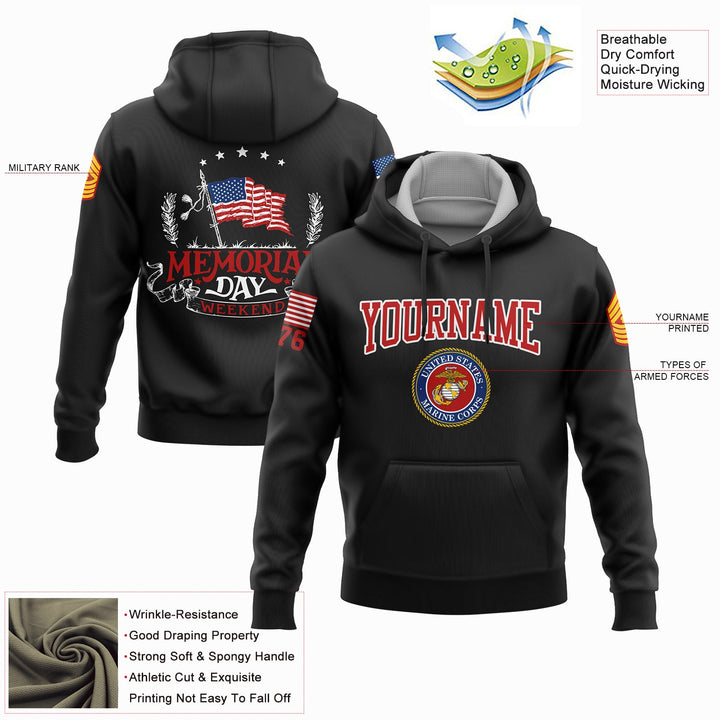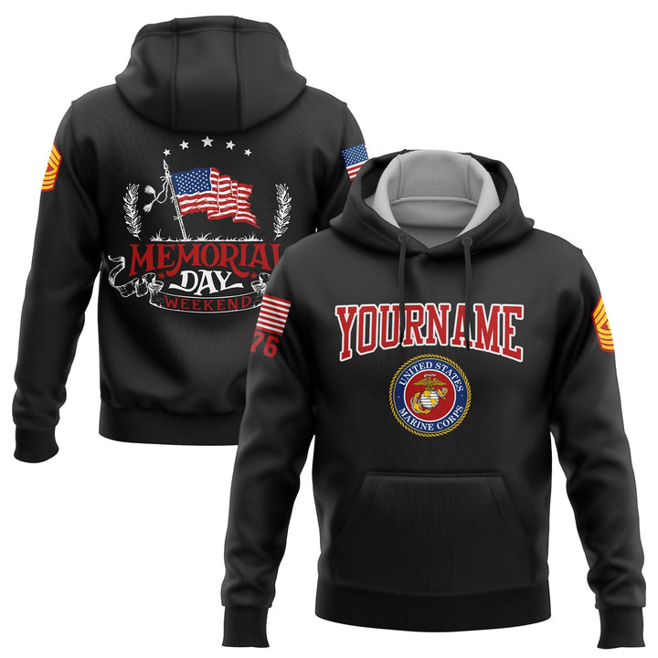 Custom Black 1776 American Flag U.S Marine Corps Military Rank Name Memorial Day Hoodie