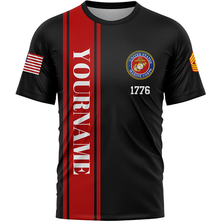 Custom Black 1776 American Flag U.S Marine Corps Military Rank Name Memorial Day T-Shirt