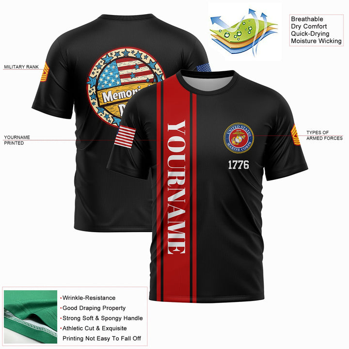 Custom Black 1776 American Flag U.S Marine Corps Military Rank Name Memorial Day T-Shirt