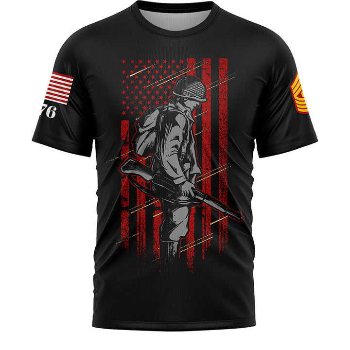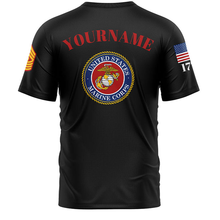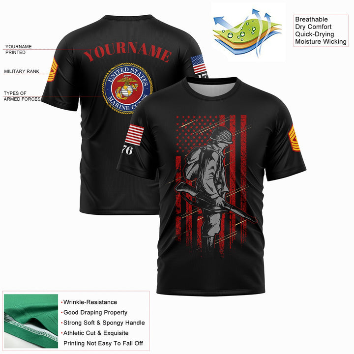 Custom Black 1776 American Flag U.S Marine Corps Military Rank Name T-Shirt
