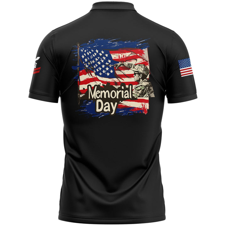 Custom Black 1776 American Flag U.S Navy Military Rank Name Memorial Day Golf Polo Shirt
