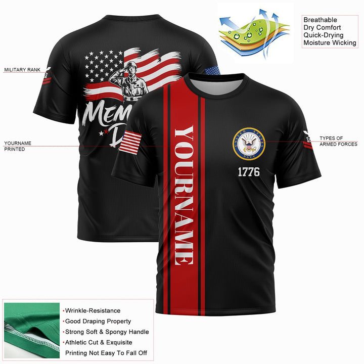 Custom Black 1776 American Flag U.S Navy Military Rank Name Memorial Day T-Shirt