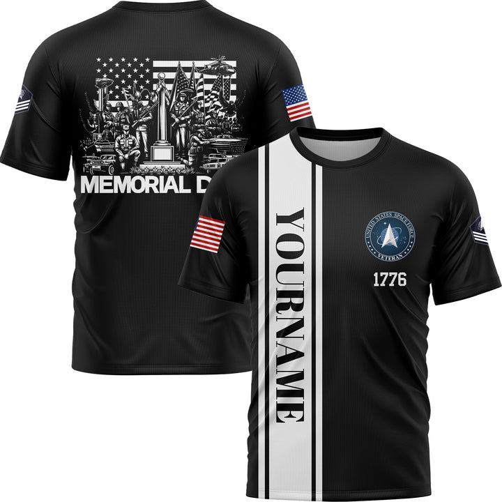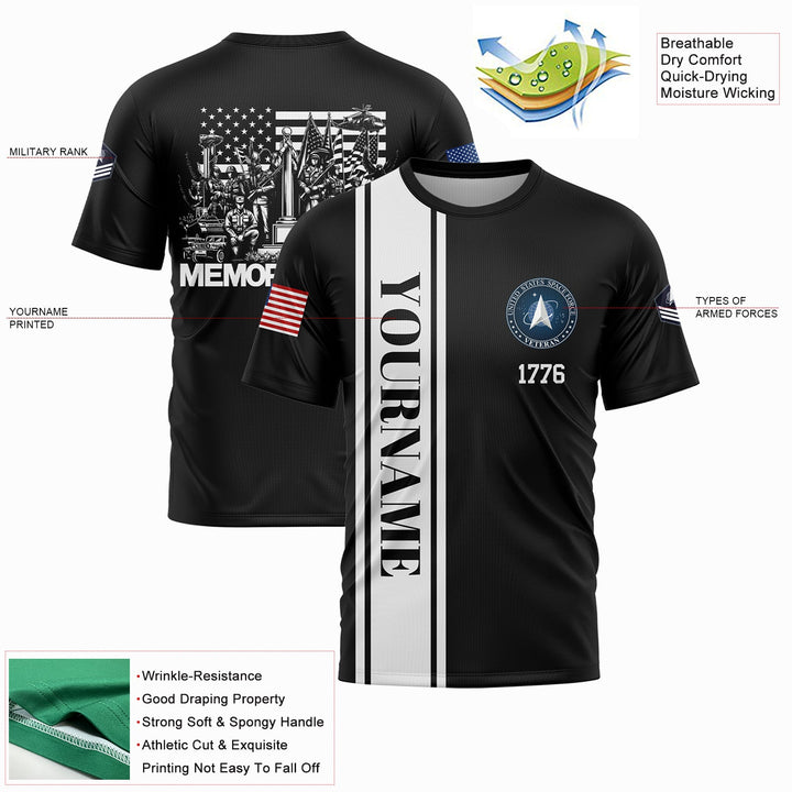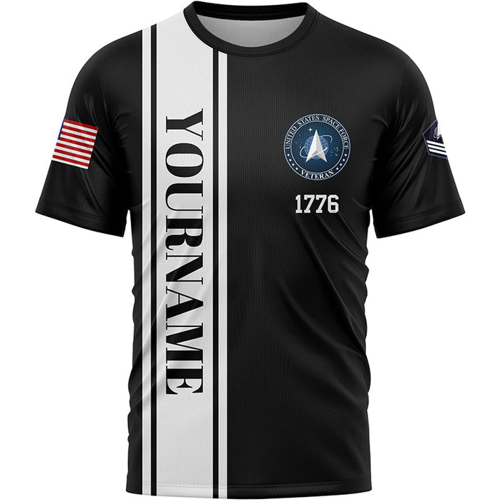 Custom Black 1776 American Flag U.S Space Force Military Rank Name Memorial Day T-Shirt