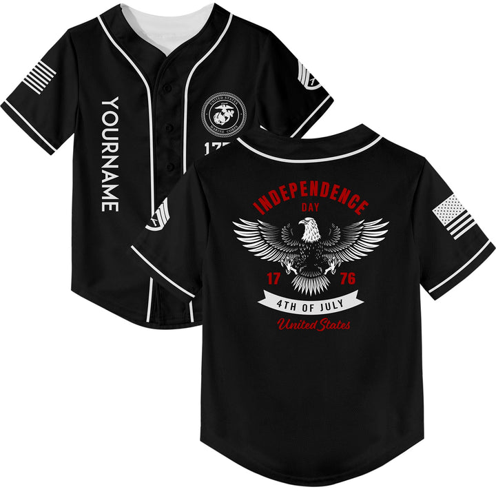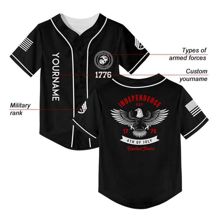 Custom Black 1776 Eagle Military Rank Name Independence Day Baseball Jersey