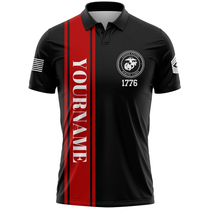 Custom Black 1776 Eagle Military Rank Name Independence Day Golf Polo Shirt