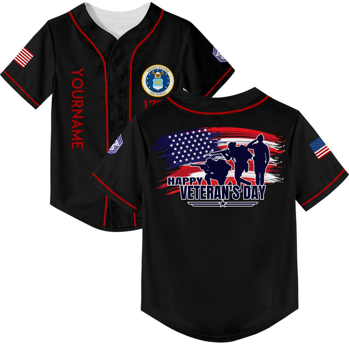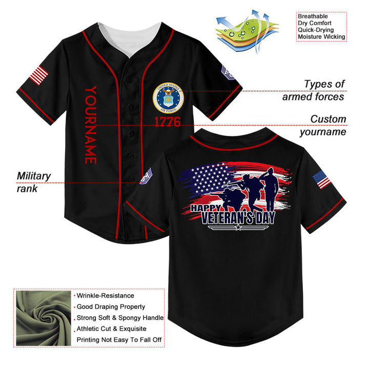 Custom Black 1776 Flag U.S Air Force Military Rank Name Veterans Day Baseball Jersey | Father's Day Gifts