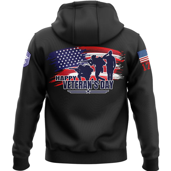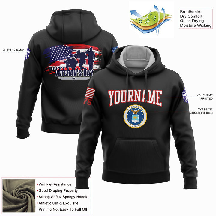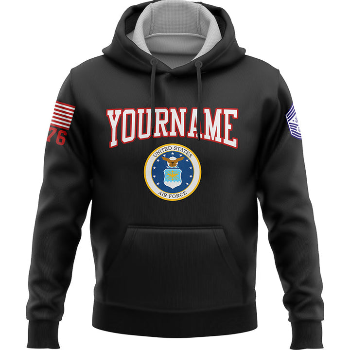 Custom Black 1776 Flag U.S Air Force Military Rank Name Veterans Day Hoodie | Father's Day Gifts