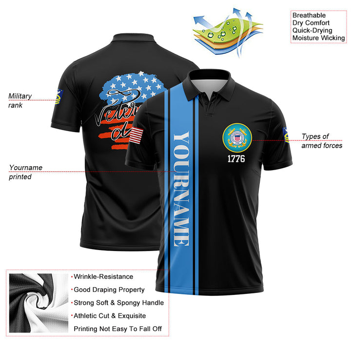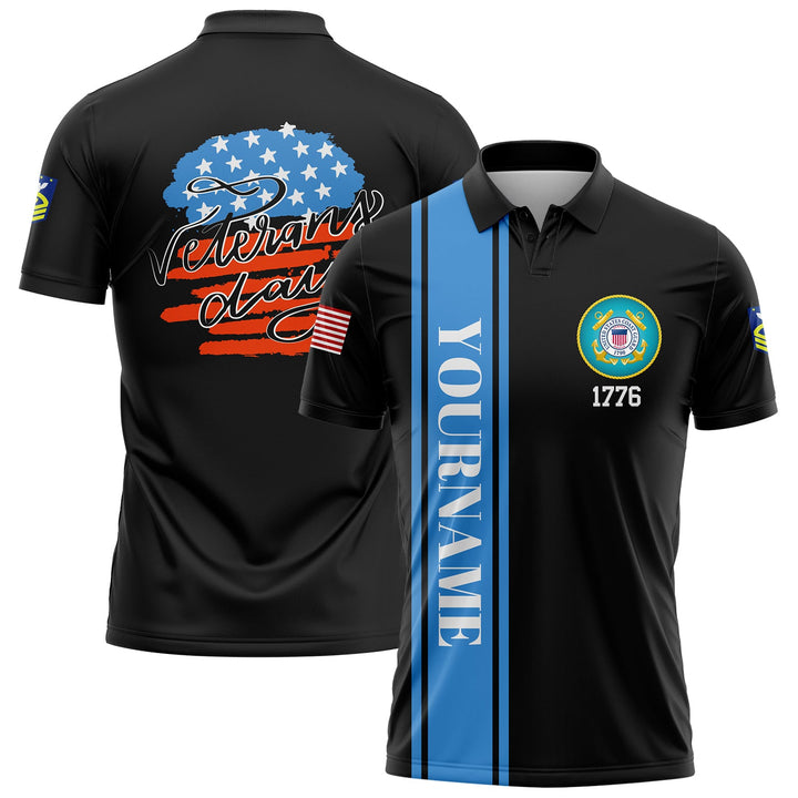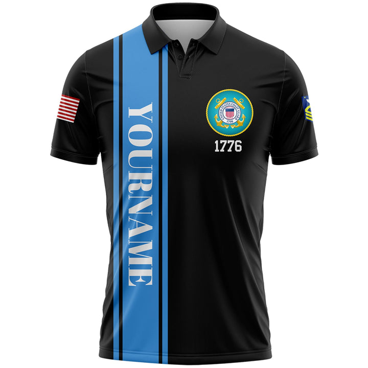 Custom Black 1776 Flag U.S Coast Guard Military Rank Name Veterans Day Golf Polo Shirt | Father's Day Gifts