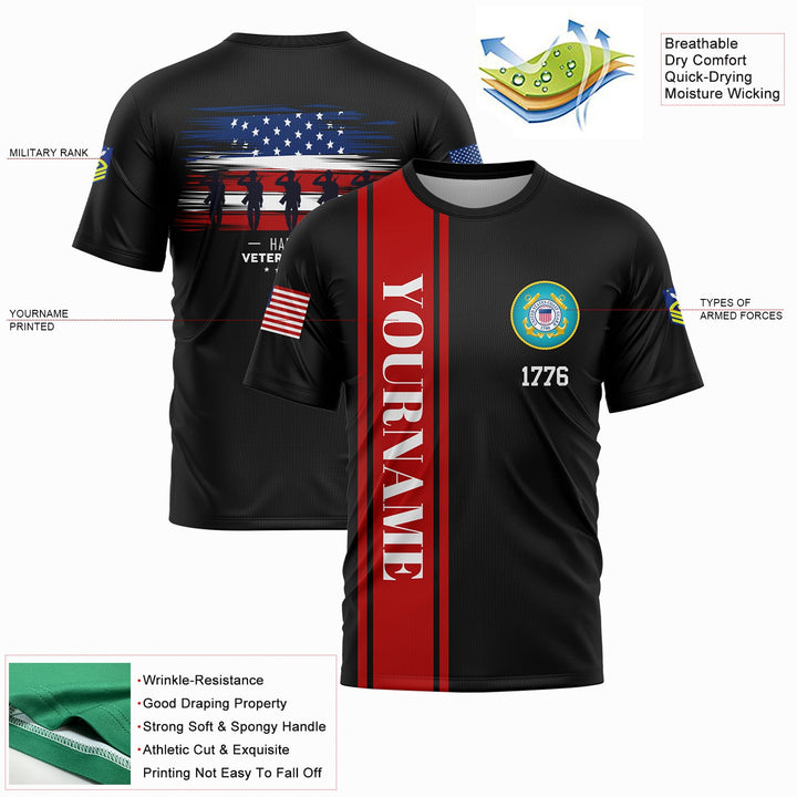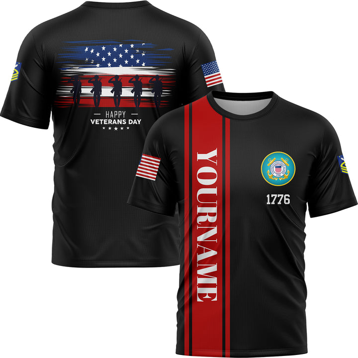 Custom Black 1776 Flag U.S Coast Guard Military Rank Name Veterans Day T-Shirt | Father's Day Gifts