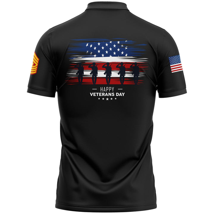 Custom Black 1776 Flag U.S Marine Corps Military Rank Name Veterans Day Golf Polo Shirt | Father's Day Gifts