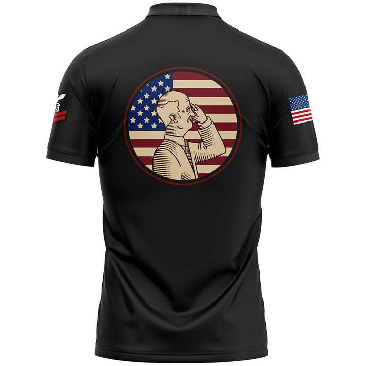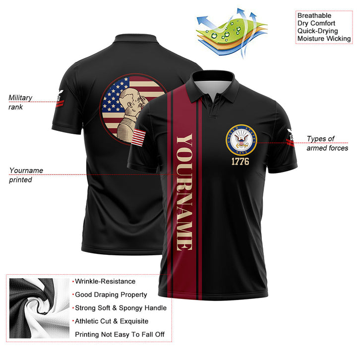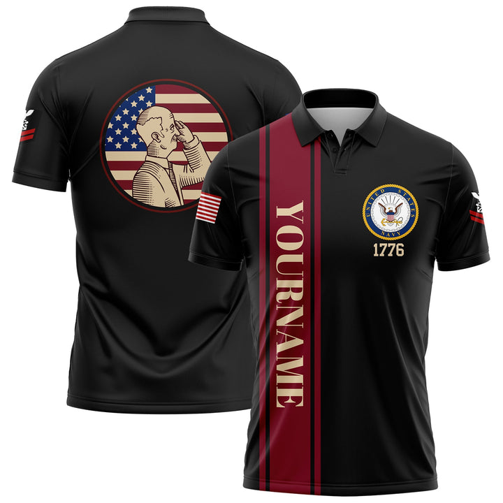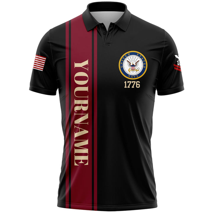 Custom Black 1776 Flag U.S Navy Military Rank Name Veterans Day Golf Polo Shirt | Father's Day Gifts