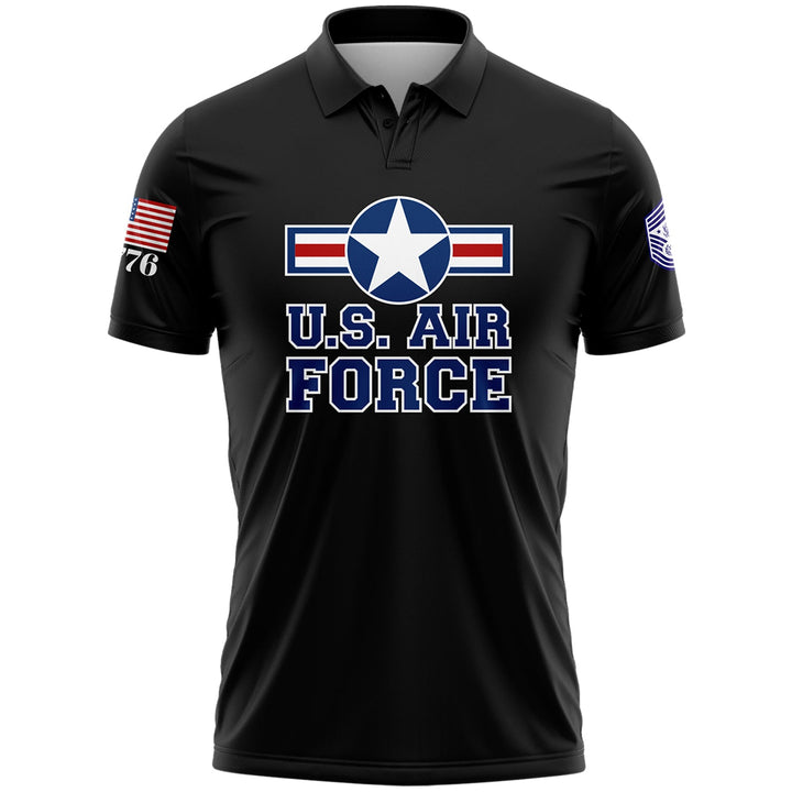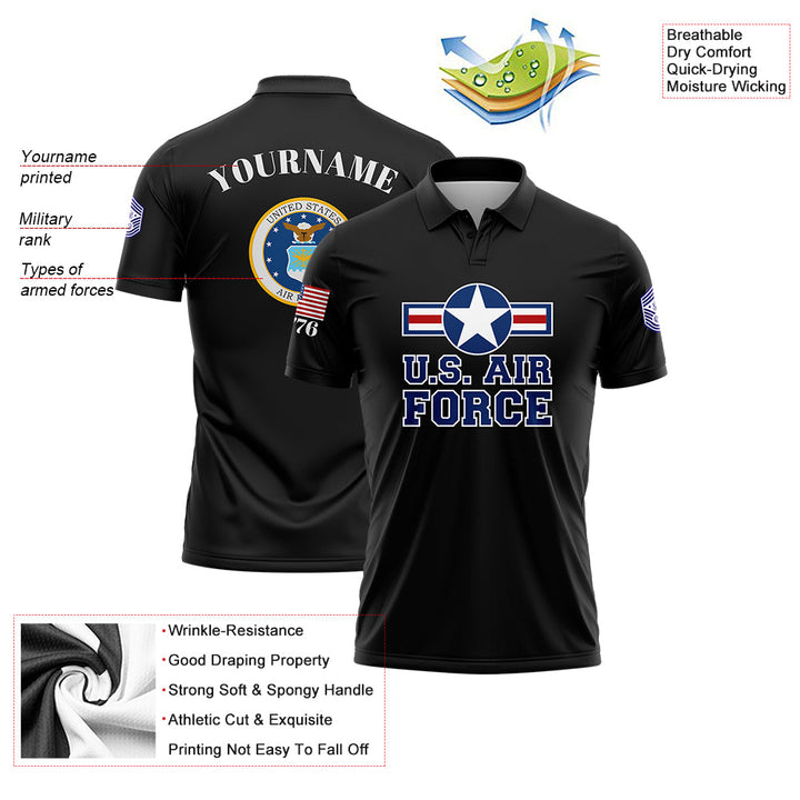 Custom Black 1776 U.S Air Force Military Rank Name Golf Polo Shirt