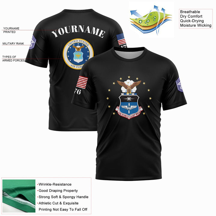 Custom Black 1776 U.S Air Force Military Rank Name T-Shirt