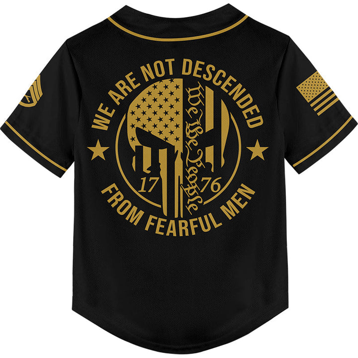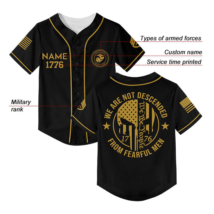Custom Black 1776 We Are Not Descended From Fearful Men Military Rank Veteran Name Baseball Jersey