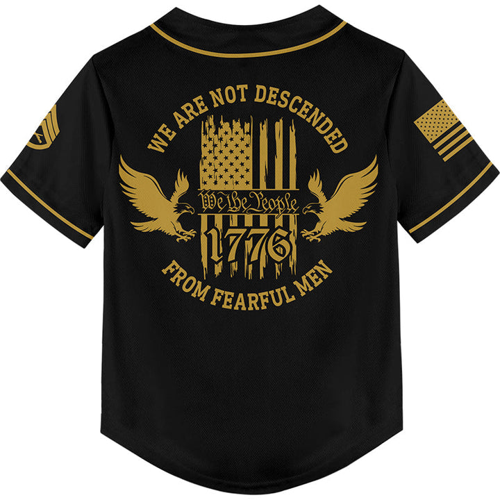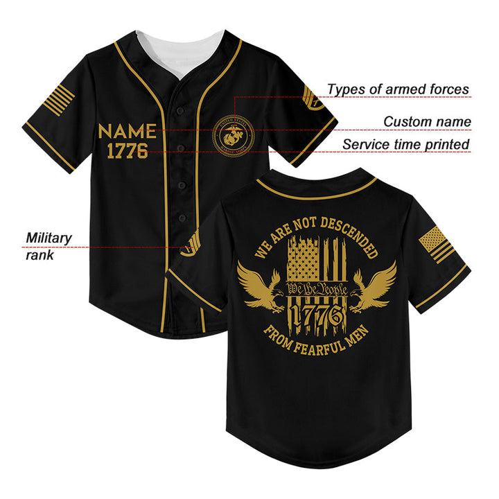Custom Black 1776 We Are Not Descended From Fearful Men Military Rank Veteran Name Baseball Jersey