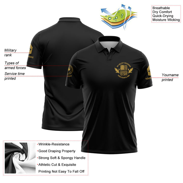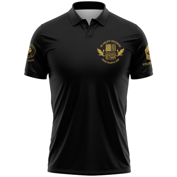 Custom Black 1776 We Are Not Descended From Fearful Men Military Rank Veteran Name Golf Polo Shirt