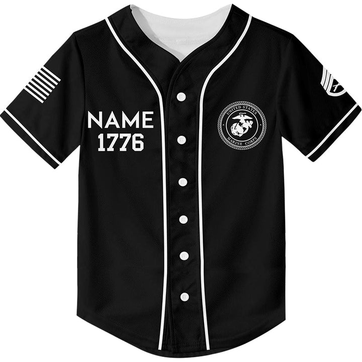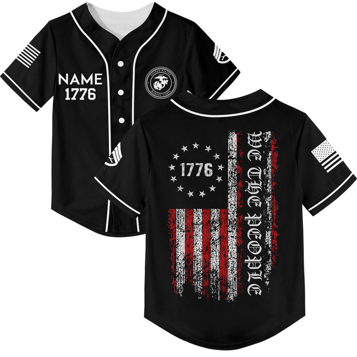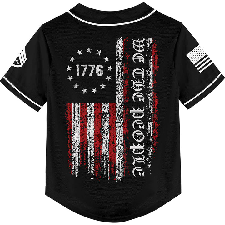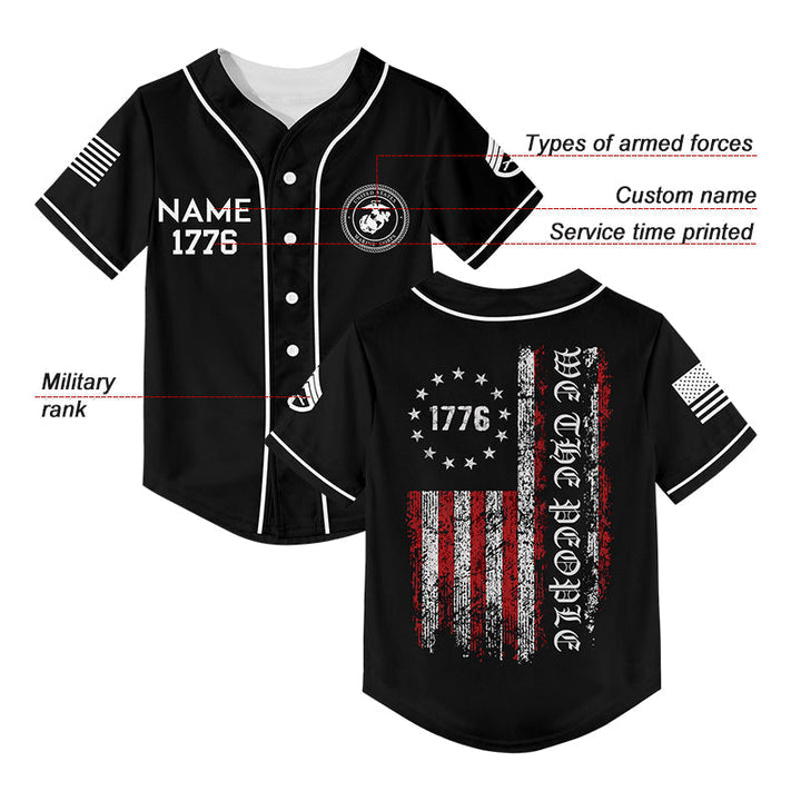 Custom Black 1776 We The People Freedom American Flag Military Rank Veteran Name Baseball Jersey