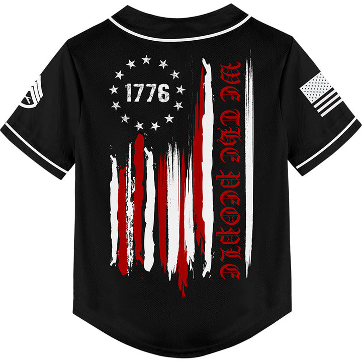 Custom Black 1776 We The People Freedom American Flag Military Rank Veteran Name Baseball Jersey