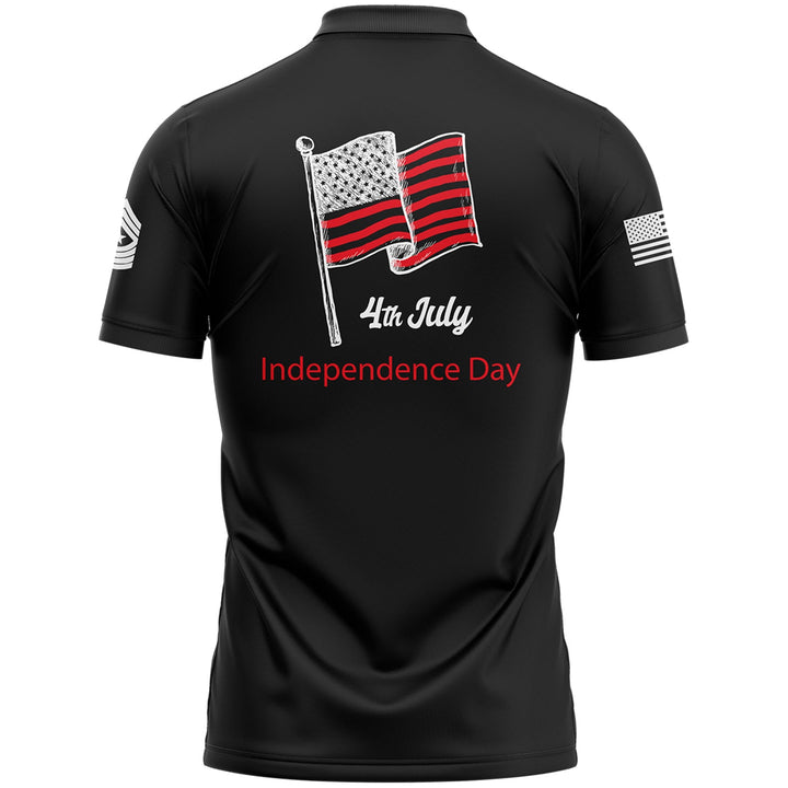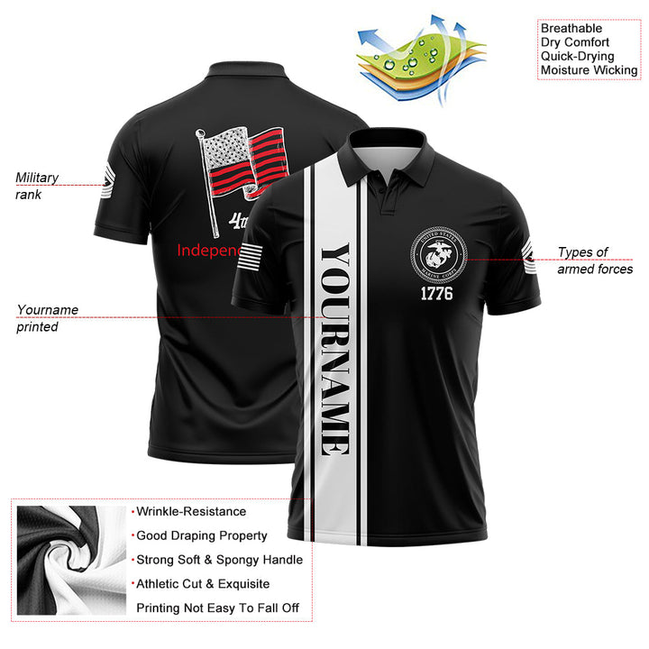 Custom Black 4th July American Flag Military Rank Name Independence Day Golf Polo Shirt