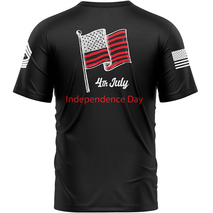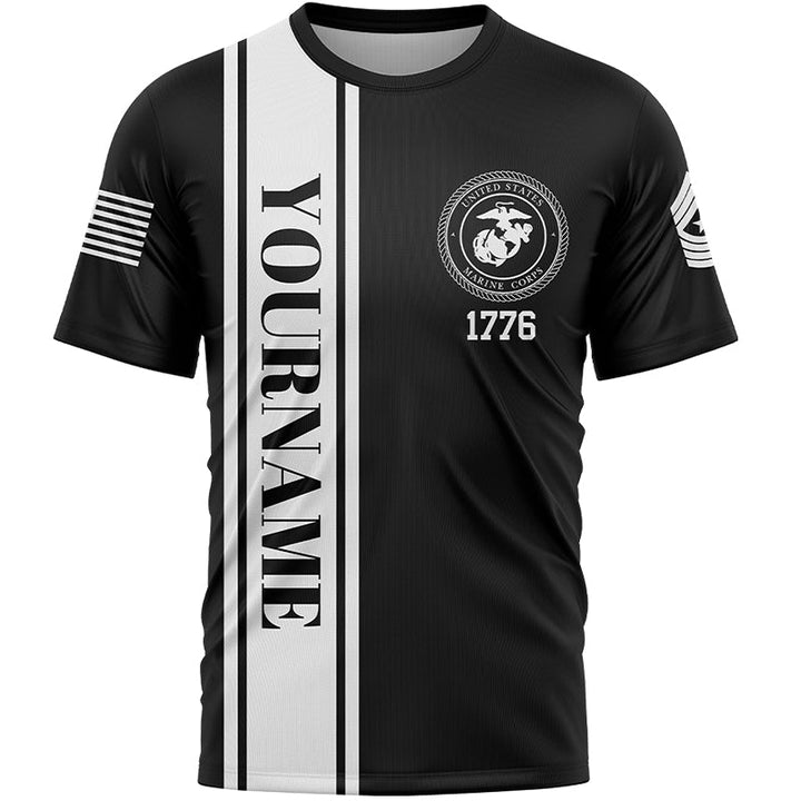 Custom Black 4th July American Flag Military Rank Name Independence Day T-Shirt