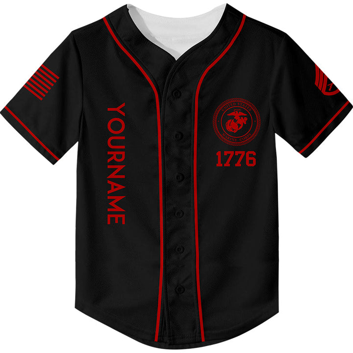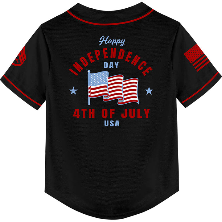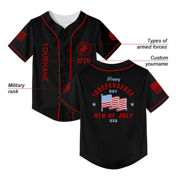 Custom Black 4th Of July American Flag Military Rank Name Independence Day Baseball Jersey