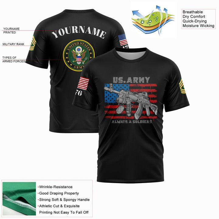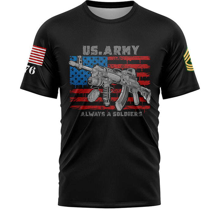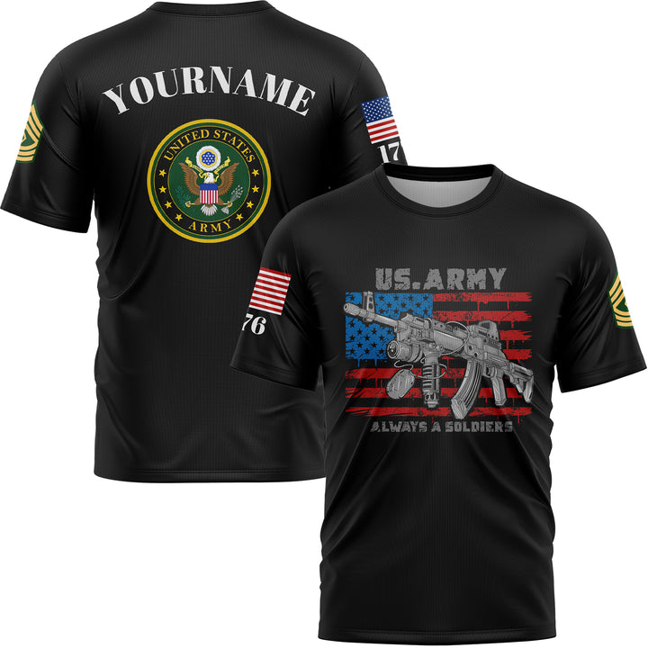 Custom Black Always A Soldiers 1776 American Flag U.S Army Military Rank Name T-Shirt