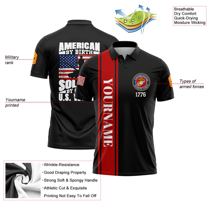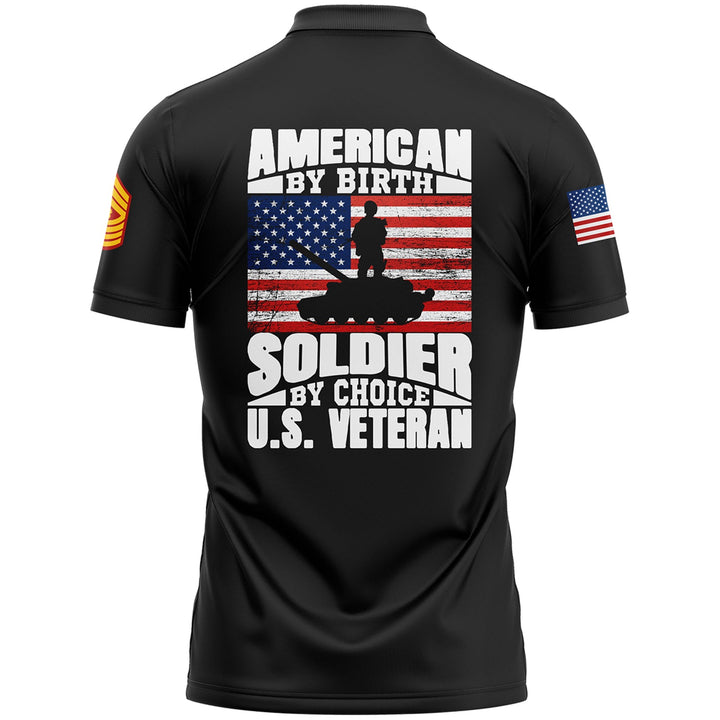 Custom Black American By Birth Soldier By Choice 1776 Military Rank Name Veterans Day Golf Polo Shirt