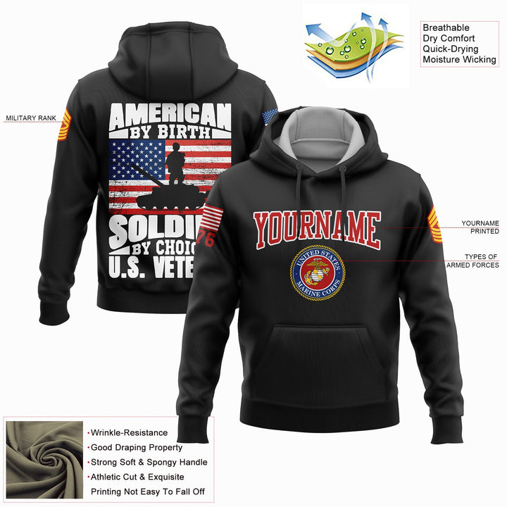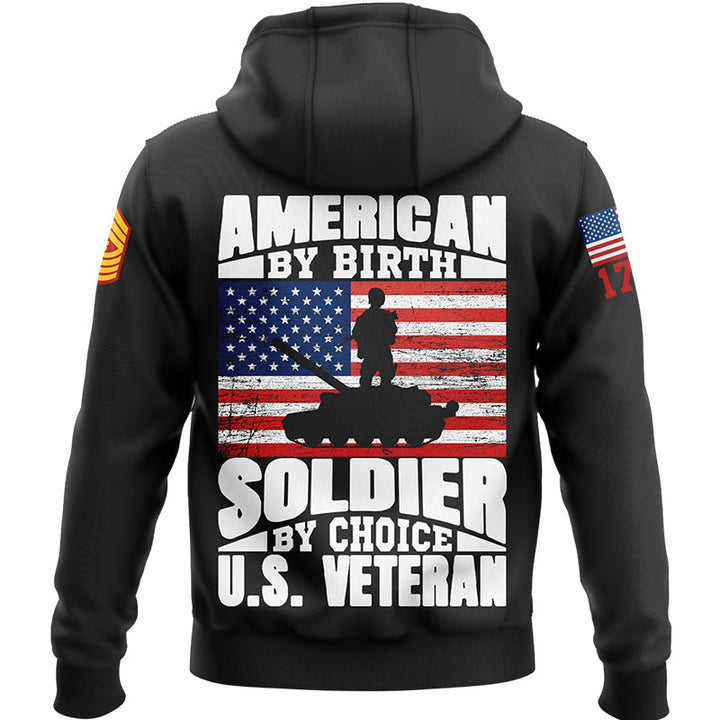 Custom Black American By Birth Soldier By Choice 1776 Military Rank Name Veterans Day Hoodie | Father's Day Gifts