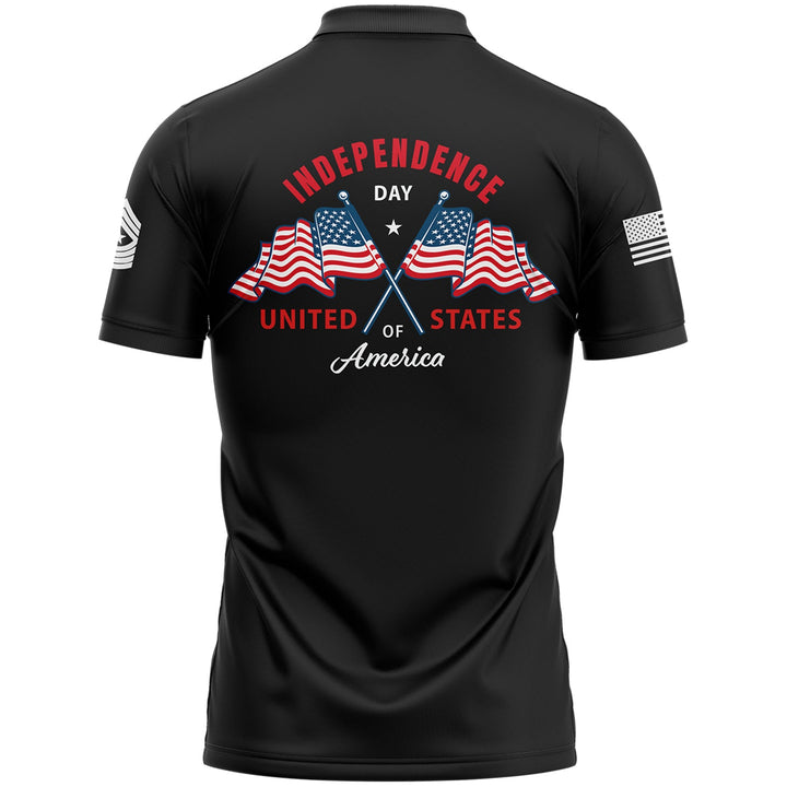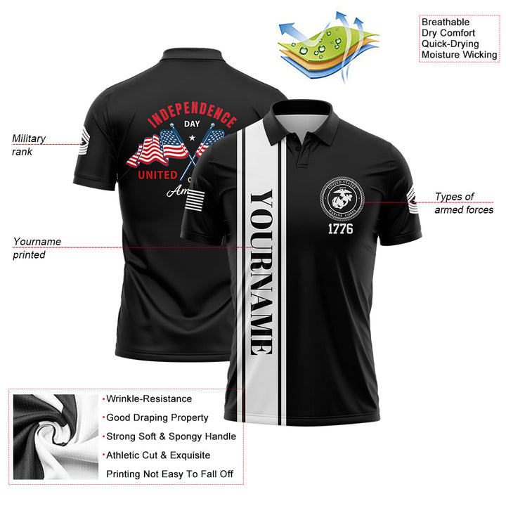 Custom Black American Flag Military Rank Name Independence Day Golf Polo Shirt