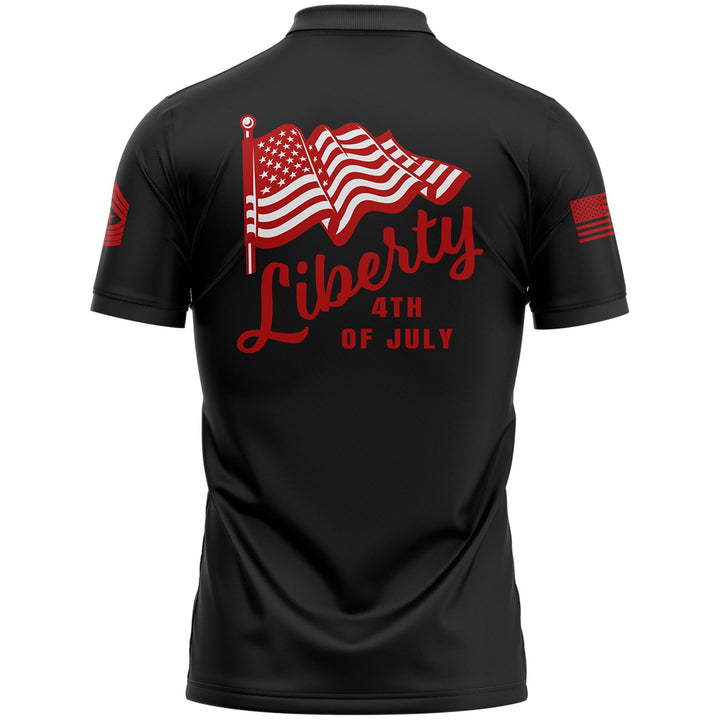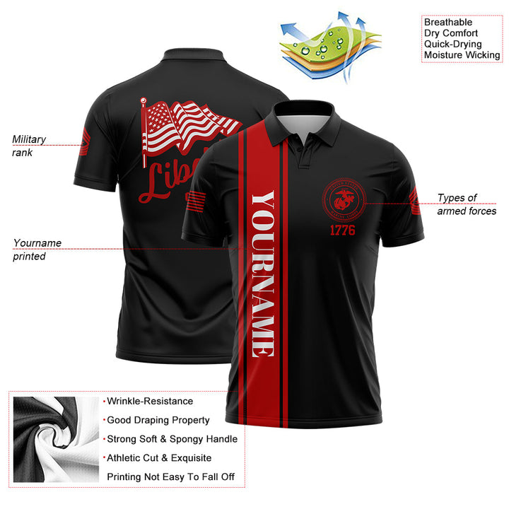 Custom Black American Flag Military Rank Name Independence Day Golf Polo Shirt