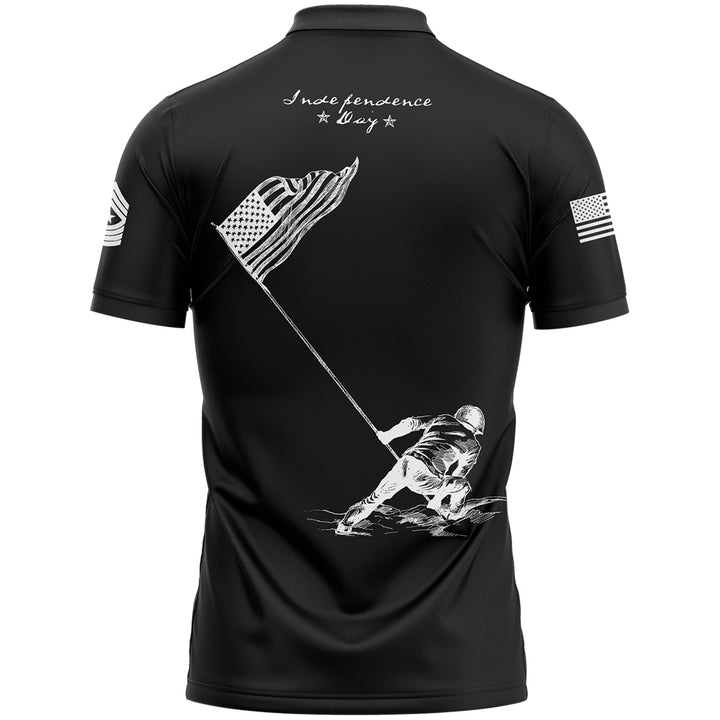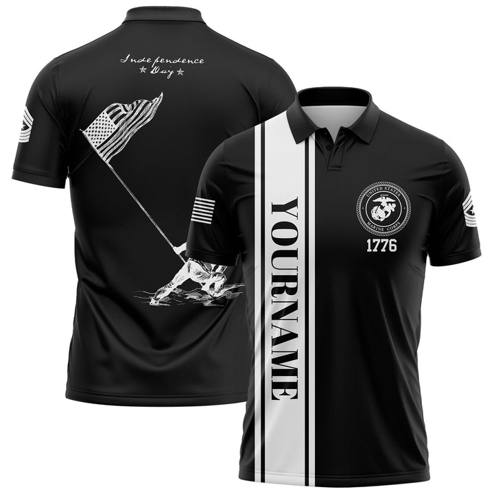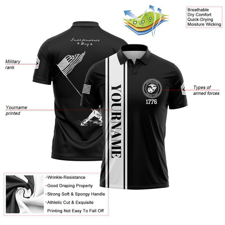 Custom Black American Flag Military Rank Name Independence Day Golf Polo Shirt