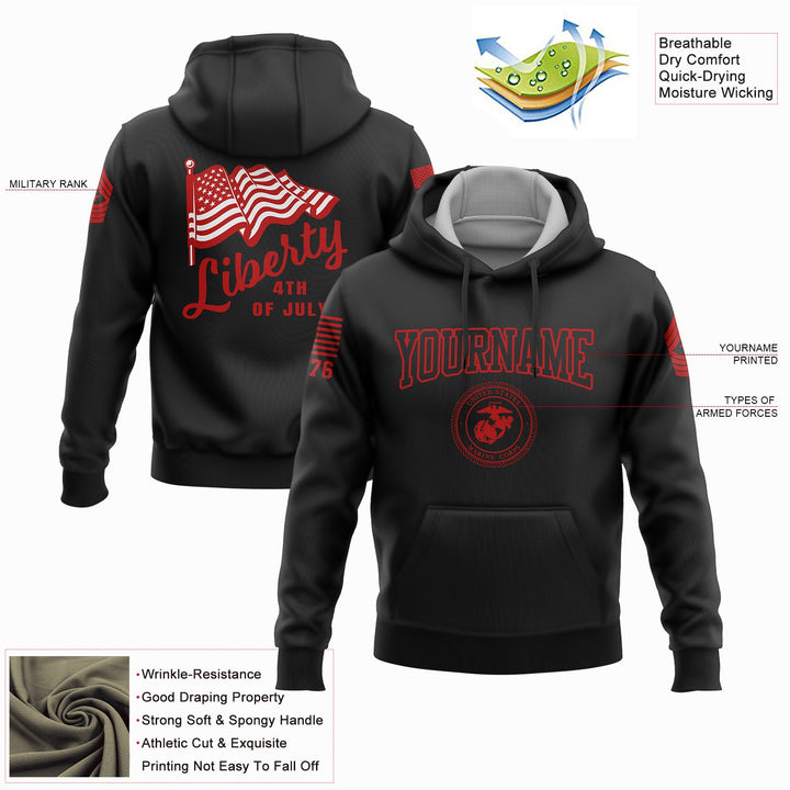 Custom Black American Flag Military Rank Name Independence Day Hoodie | Father's Day Gifts