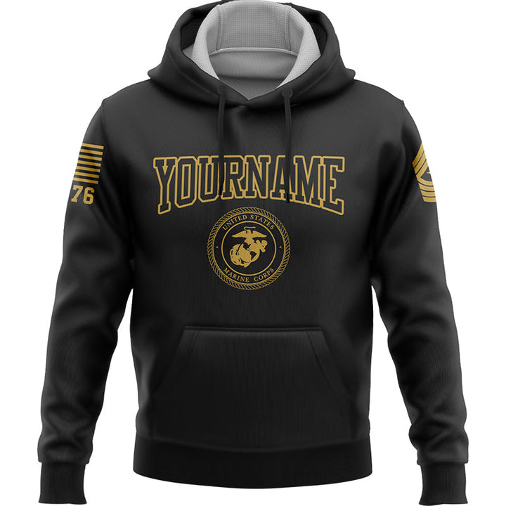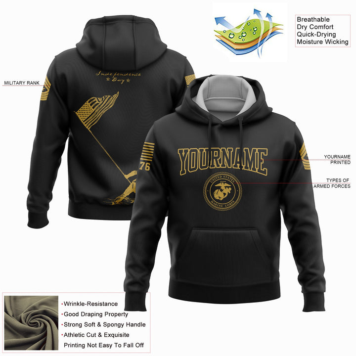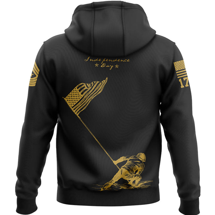 Custom Black American Flag Military Rank Name Independence Day Hoodie | Father's Day Gifts