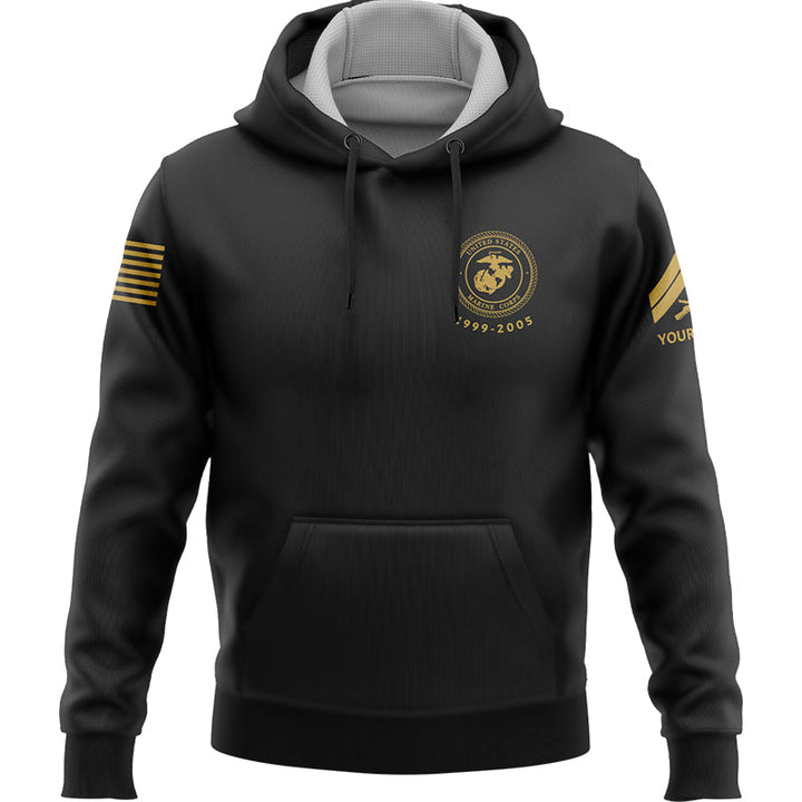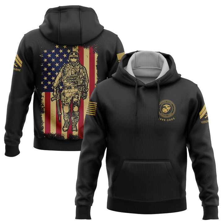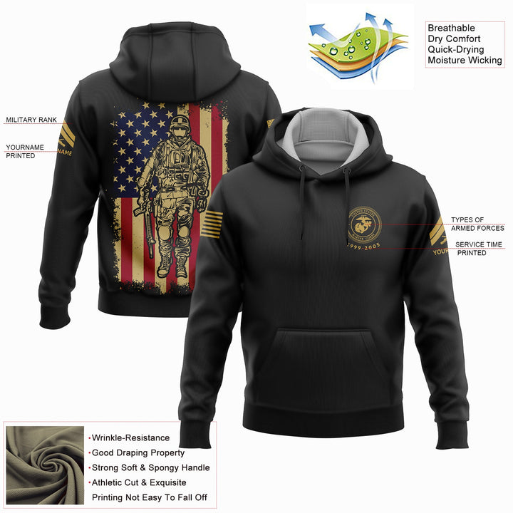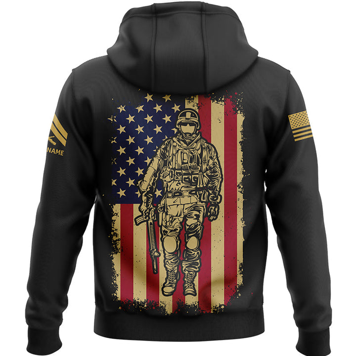 Custom Black American Flag Military Rank Veteran Name Hoodie