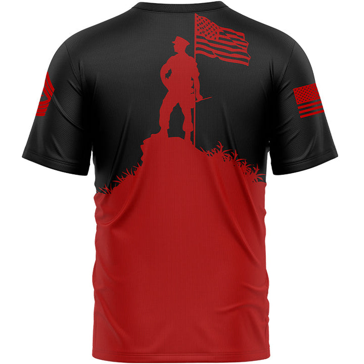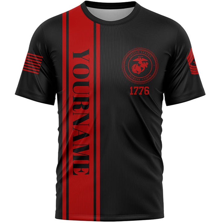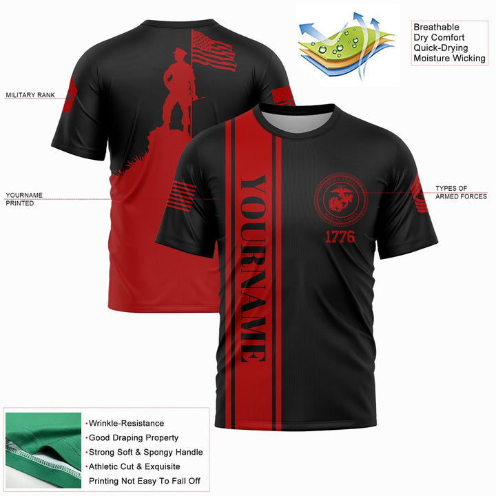 Custom Black American Flag Military Rank Name Independence Day T-Shirt